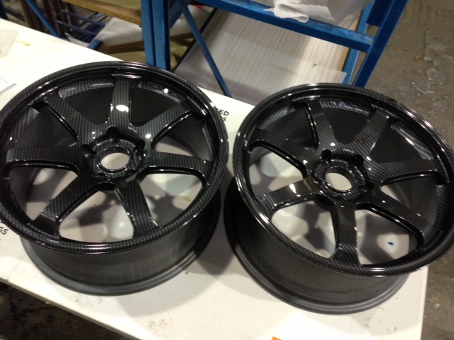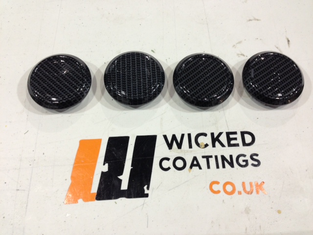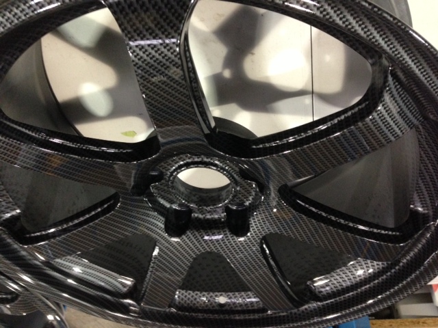 Car alloy wheels coated in carbon fibre hydrographic film painted grey
