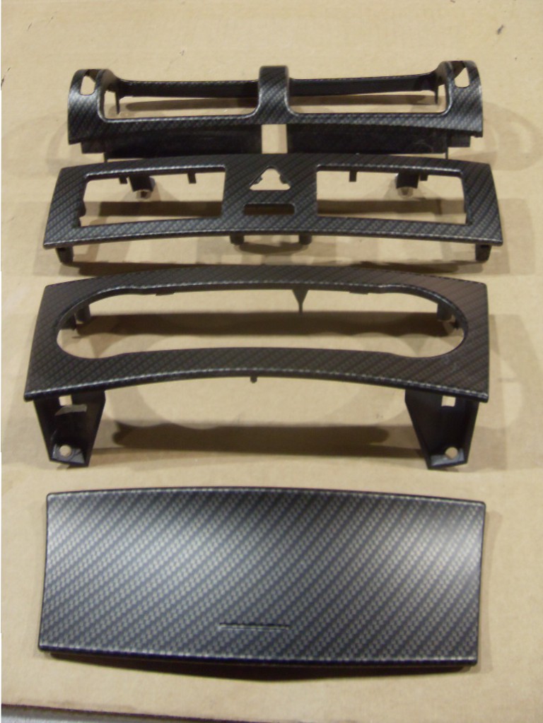 Car dashboard elements coated in carbon fibre hydrographic film painted black
