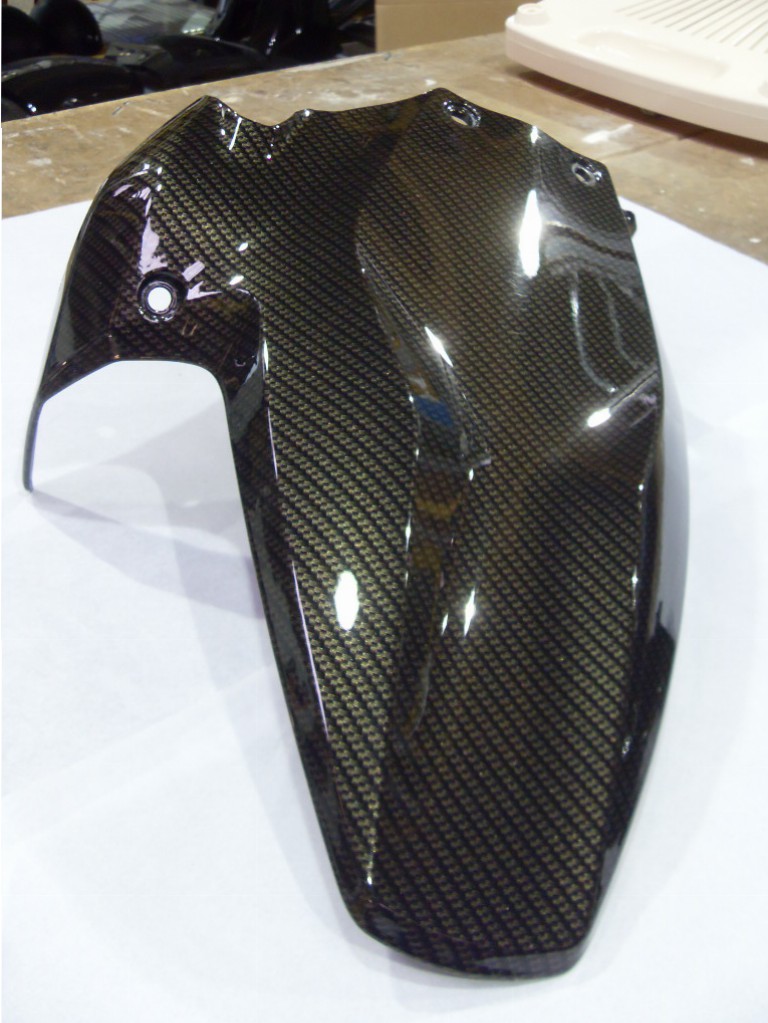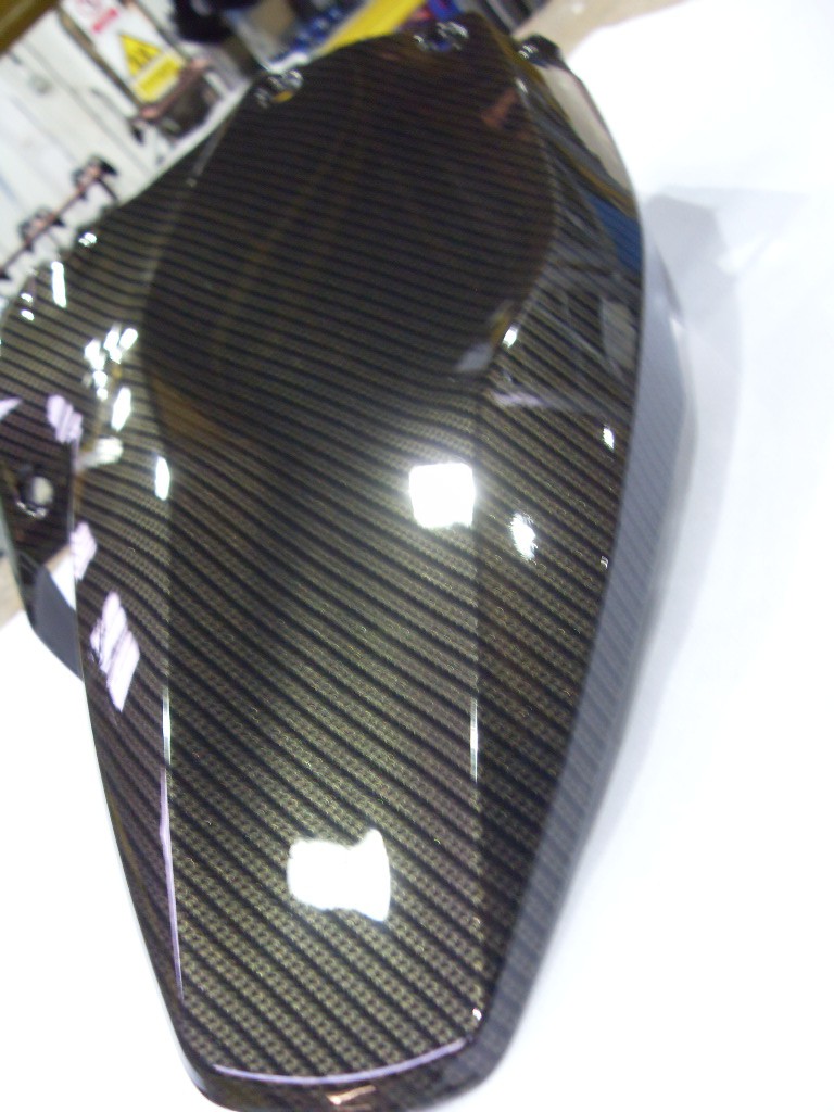 Motorbike various elements coated in carbon fibre hydrographic film painted black